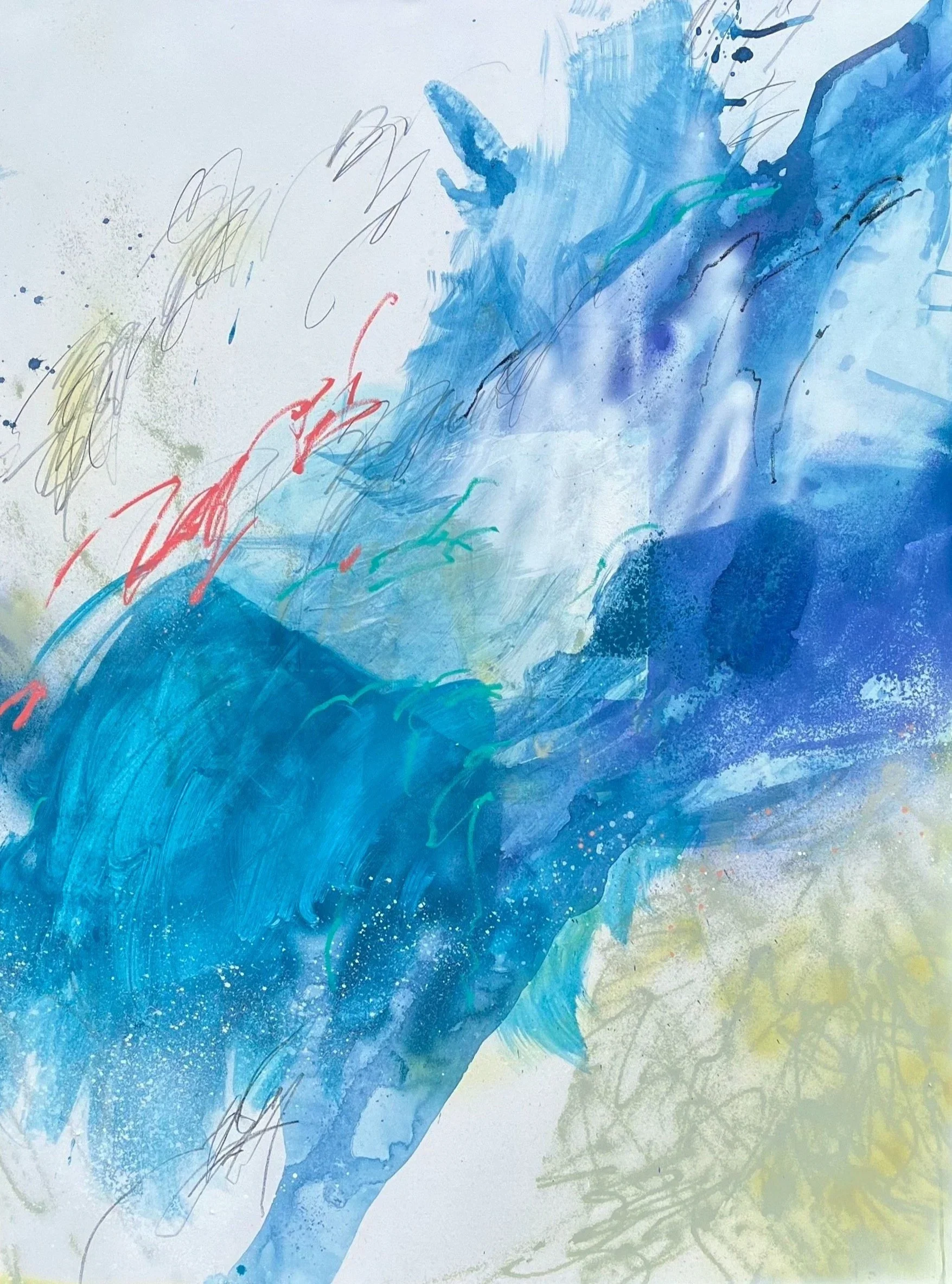 more to know (11 x 14) acrylic, watercolour, graphite, paint stick on paper