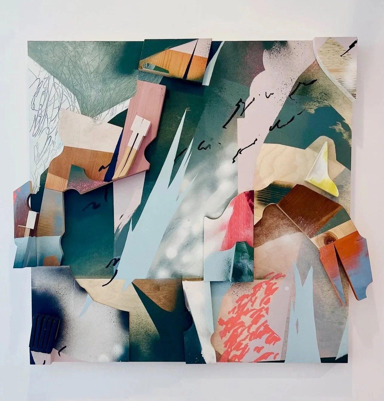 TikTok Money (30 x 36) acrylic, paint stick, spray paint, graphite, collage, house paint on canvas