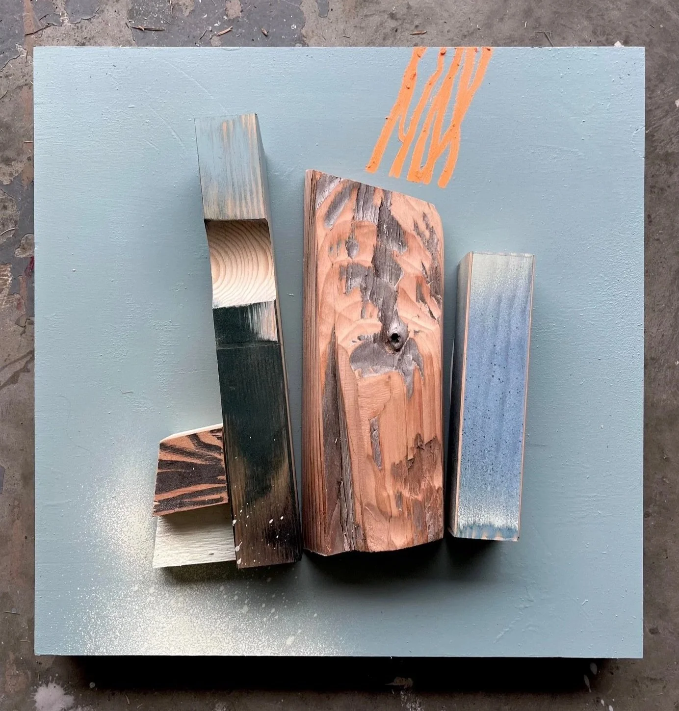 i felt that (30 x 48) acrylic, paint stick, wood stain, graphite on canvas