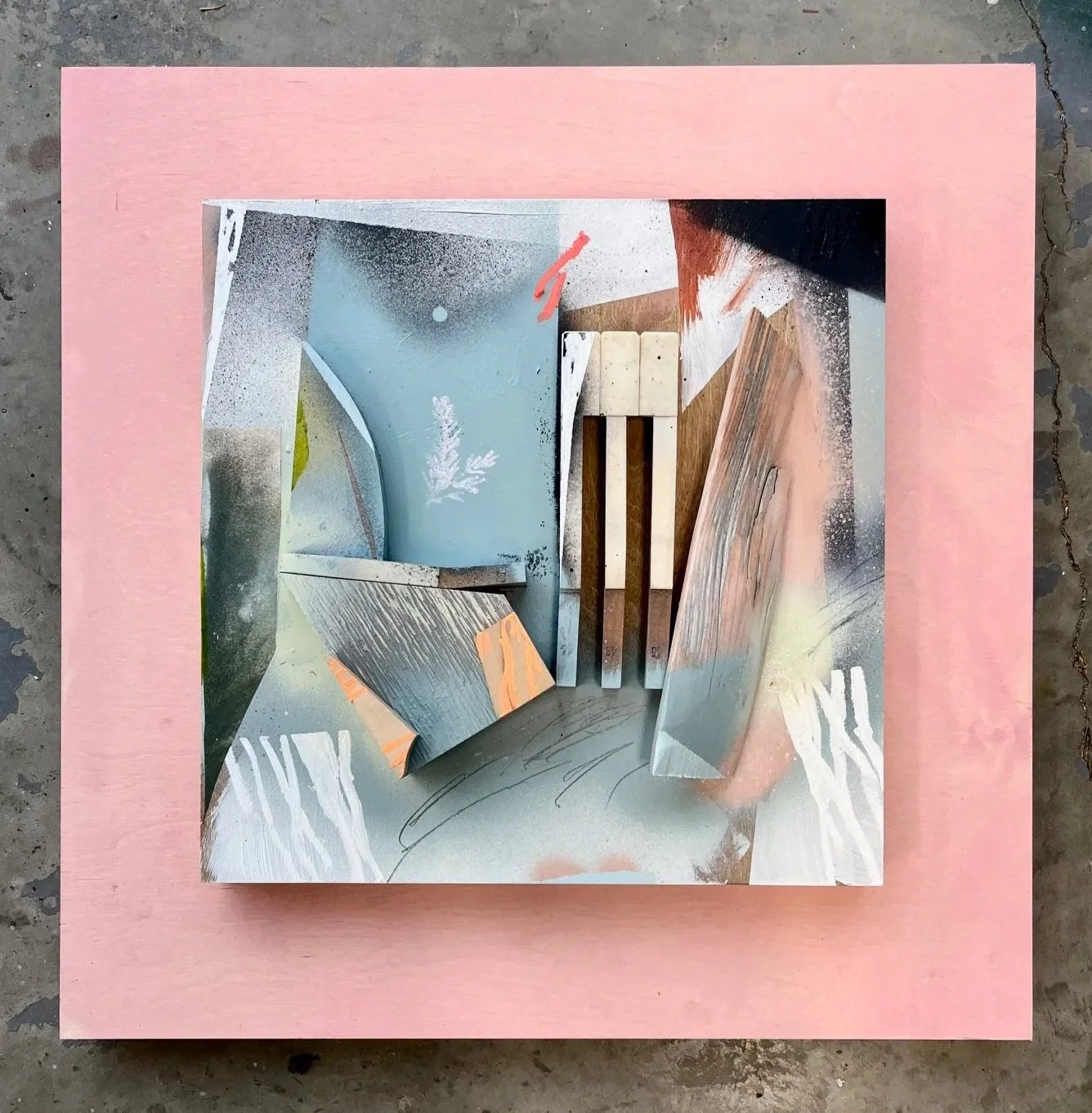 the architect’s lack of remorse (30 x 30) acrylic, house paint, spray paint, paint stick, graphite on canvas