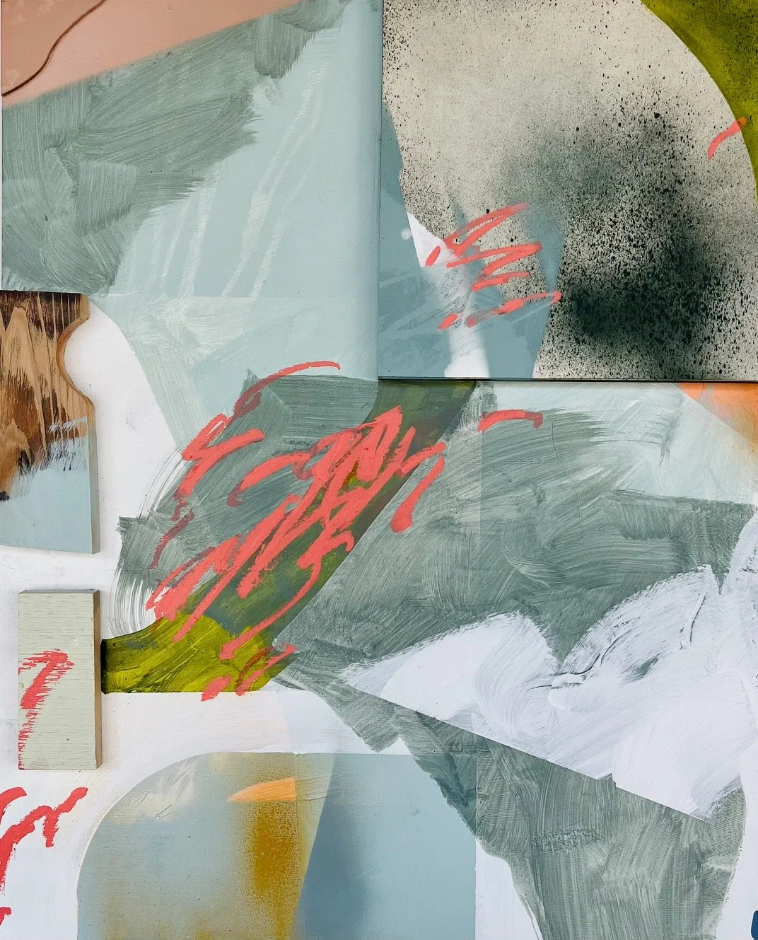 candid (40 x 60) acrylic, spray paint, flashe, paint stick, house paint, graphite on canvaS