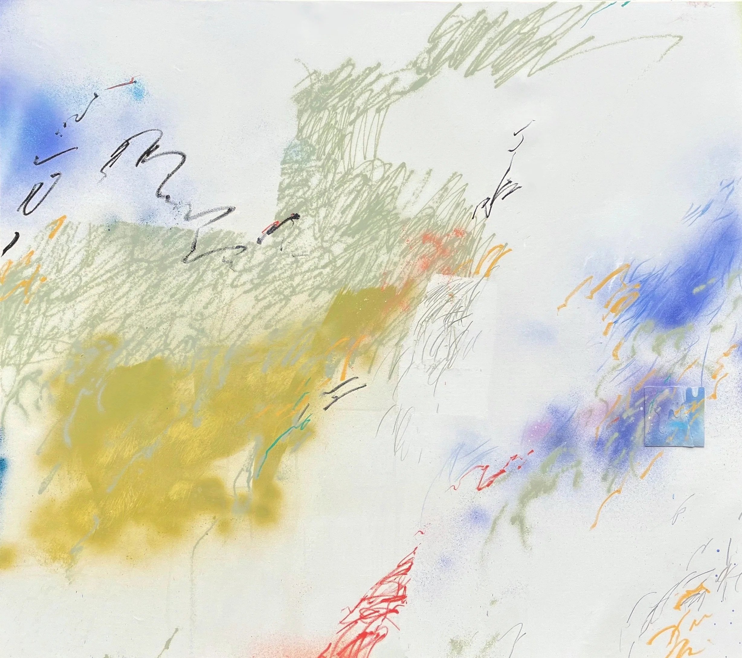 instant thalassic (36 x 48) acrylic, paint stick, spray paint, graphite, flashe on canvas