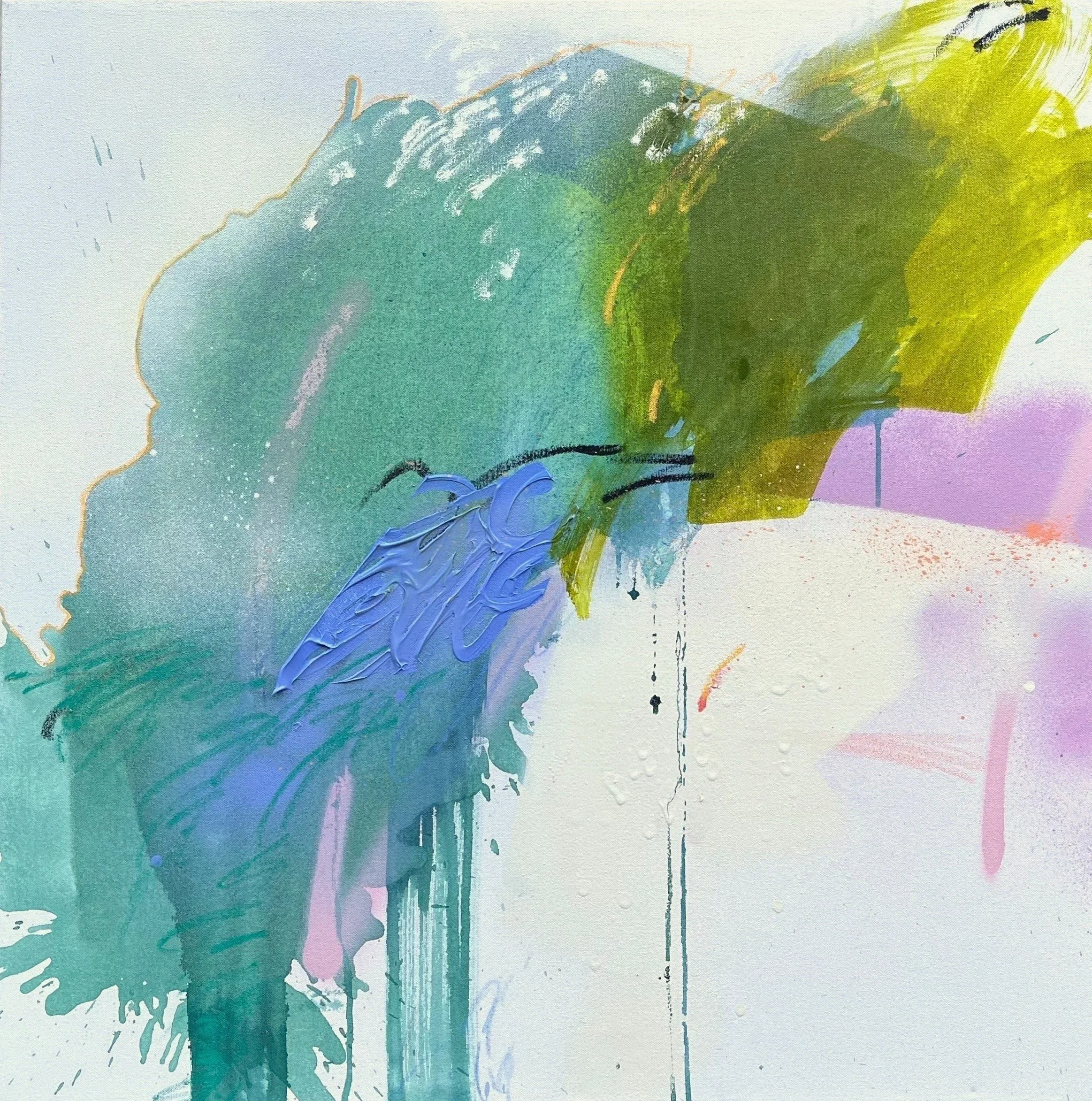 the curator’s last big cry (30 x 30) acrylic, house paint, spray paint, paint stick, graphite on canvas